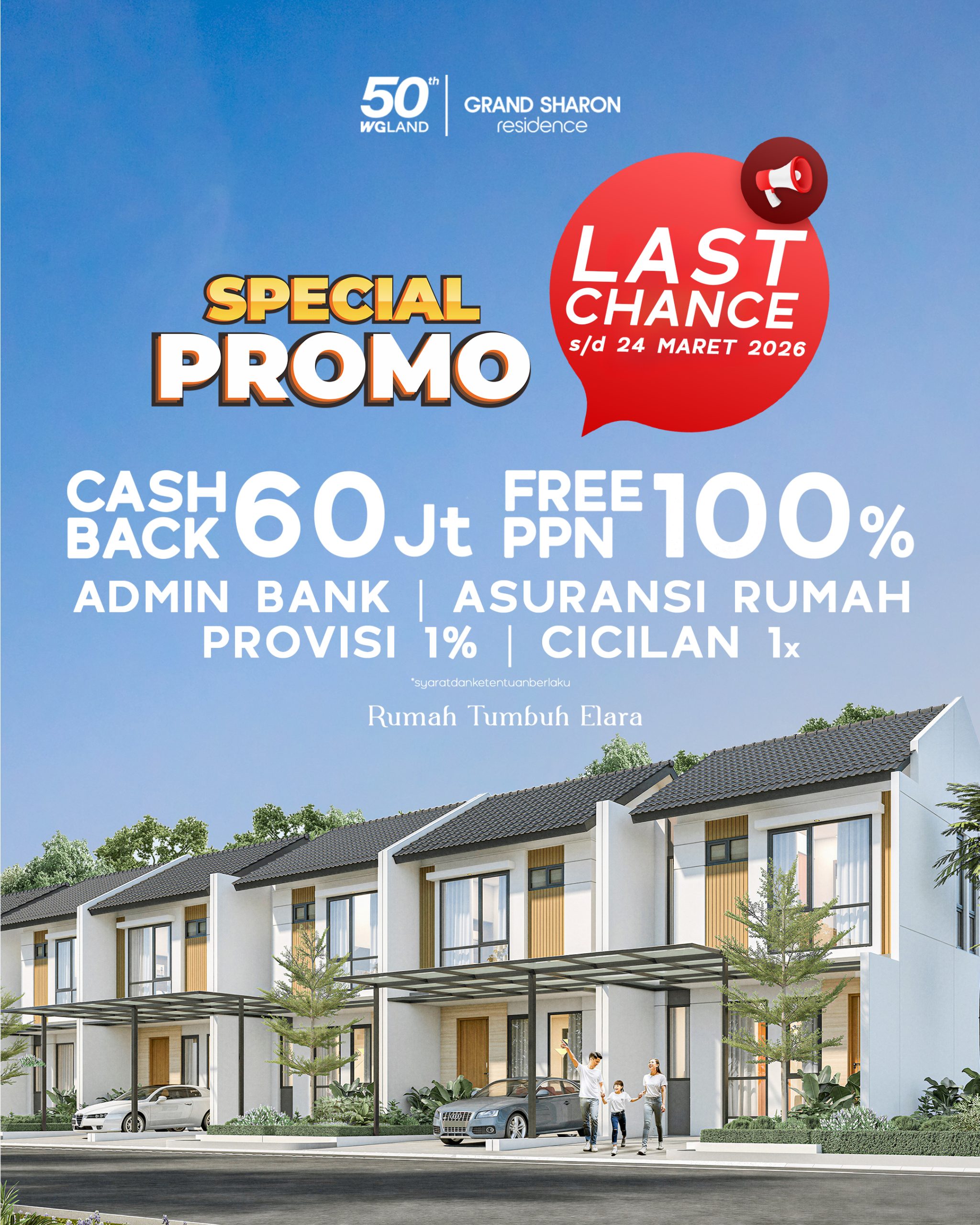 Rumah Tumbuh yang ditawarkan WG LAND di Grand Sharon Residence adalah hunian adaptif yang dirancang untuk mengikuti perkembangan kebutuhan keluarga Anda. Dengan sisa lahan yang luas sebesar 68 m², tipe ini memberikan fleksibilitas penuh untuk perluasan bangunan secara bertahap tanpa harus pindah rumah. Konsep ini mendukung efisiensi finansial dan kebebasan berkreasi dalam tata ruang, menjadikan Rumah Tumbuh pilihan cerdas bagi keluarga yang mengutamakan rencana jangka panjang dan nilai investasi yang terus berkembang.